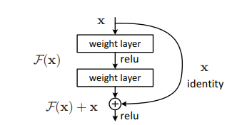 Leveraging skip connections, we can allow the network to learn the identity function (depicted in the above figure), which allows the network to pass the input through the residual block without passing through the other weight layers. This helps in tackling the problems of vanishing gradients and also keeping a focus on the high-level features which sometimes get lost with multiple levels of max-pooling.