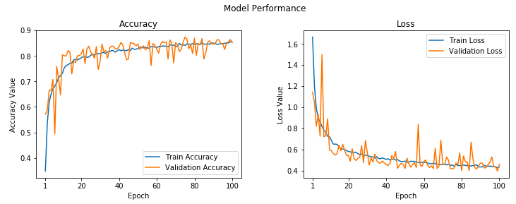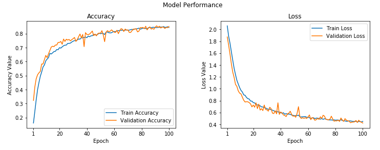The learning curves for our trained model can be observed in the following figure.