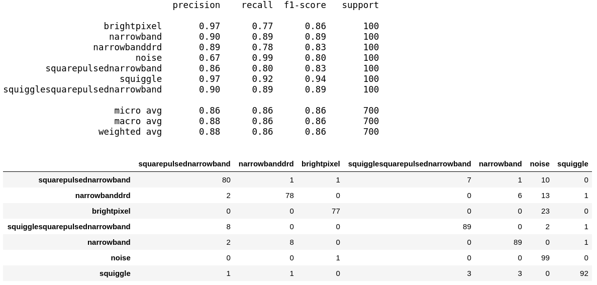 This brings us to the end of our two-part series on leveraging deep learning to further the search of extra-terrestrial intelligence. You saw how we converted radio-signal data into spectrograms and then leveraged the power of transfer learning to build classifiers which performed pretty well even will really low number of training data samples per class.