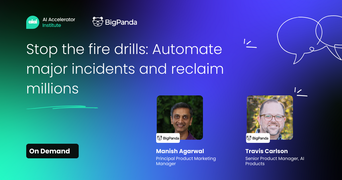 In this session with Big Panda, you’ll learn how organizations are breaking that cycle by introducing major incident automation and proactive detection into their workflows to deliver immediate value and measurable savings.