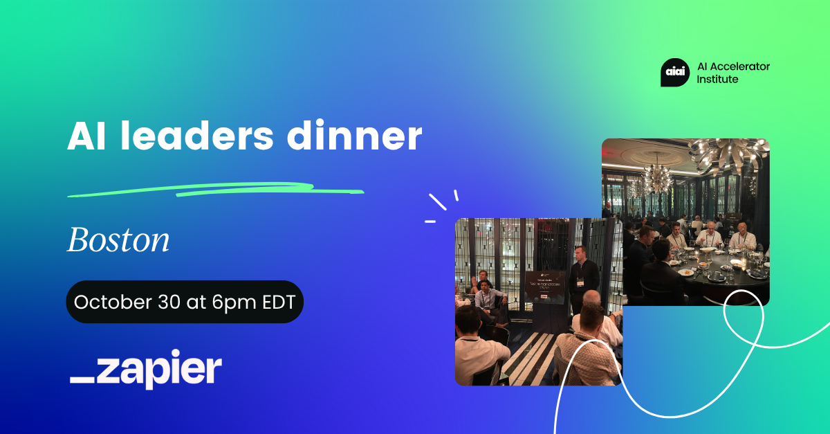 Unwind with Zapier and the AI Accelerator Institute after Day 1 of the CAIO Boston Summit for an exclusive dinner with fellow senior leaders driving AI transformation across their teams, departments, and organizations.