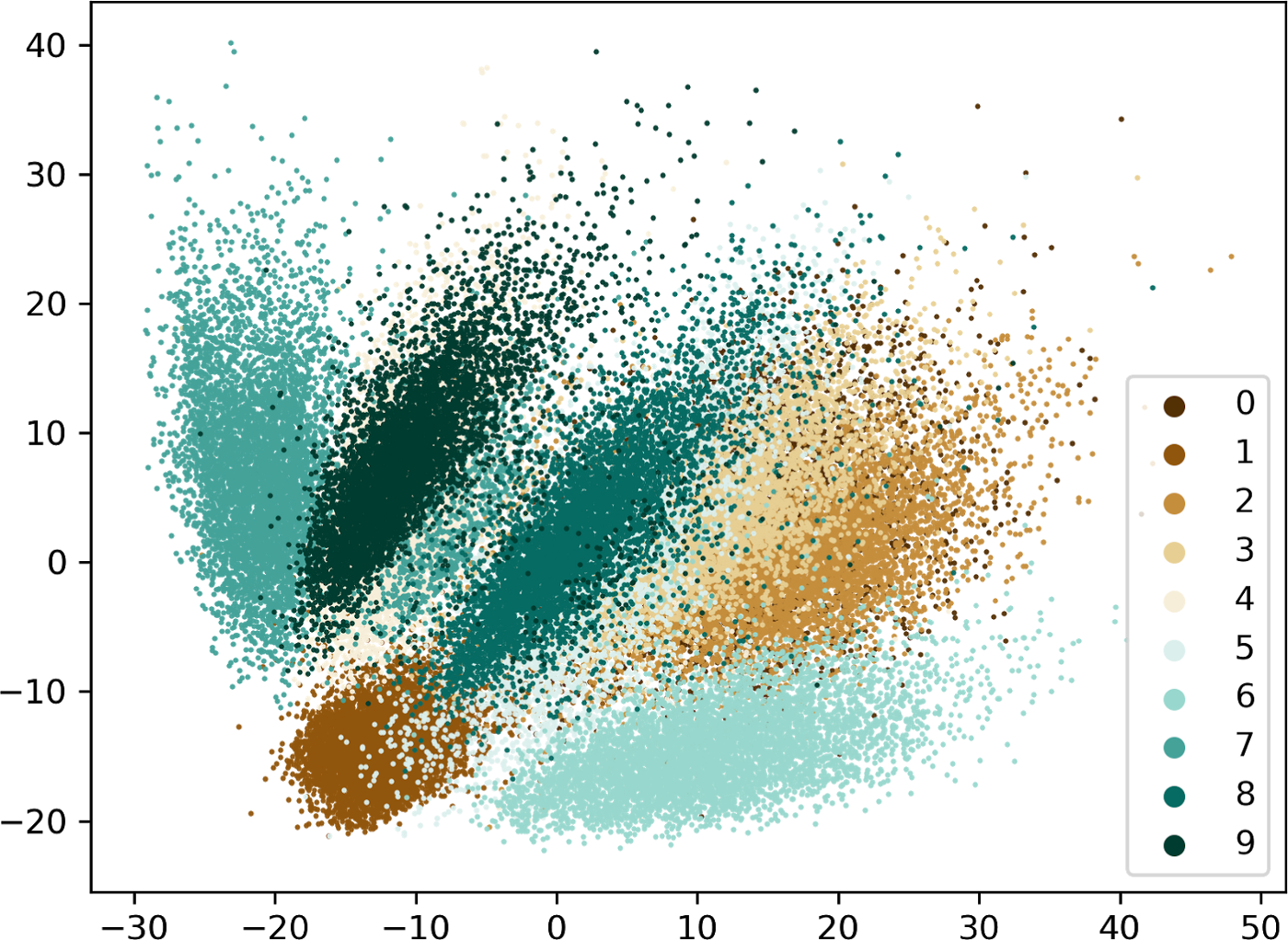 Notice how scattered the encodings of the same numbers are. The points are quite distant from each other.