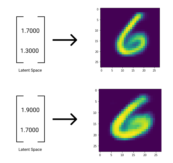 Let’s say we have two images of the number 7, both of which are fed to the VAE’s encoder. The latent spaces of both of these images should theoretically be similar, as both images contain the number 7.